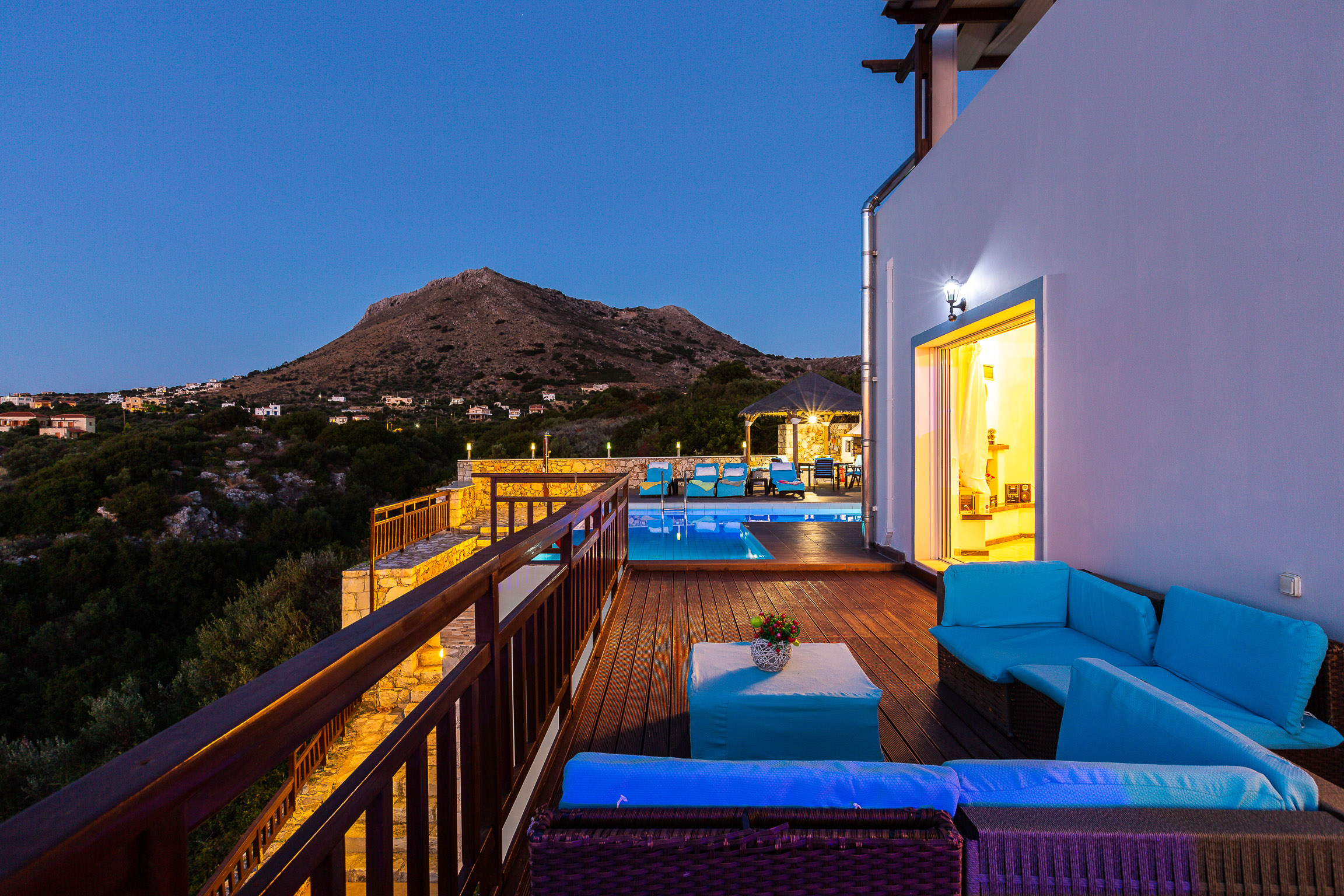 Excellent villa with pool above Plaka. 10 minute walk down to village center with good tavernas and 2 local mini-markets.(Bit longer back up hill but not a problem) Fantastic welcome 'pack' in villa including huge beef pasticcio meal and dessert! Spiral staircase OK once you get used to it. Very pleasant family, who looked after us whilst we were there.